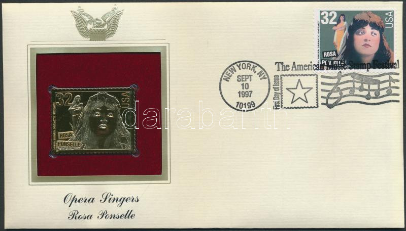 Amerikai Egyesült Államok 1997. "Operaénekesek/Rosa Ponselle 32c" aranyfóliás(22kt) bélyeg replika FDC borítékban, a megegyező bélyeggel,elsőnapi bélyegzővel és ismertetővel T:1