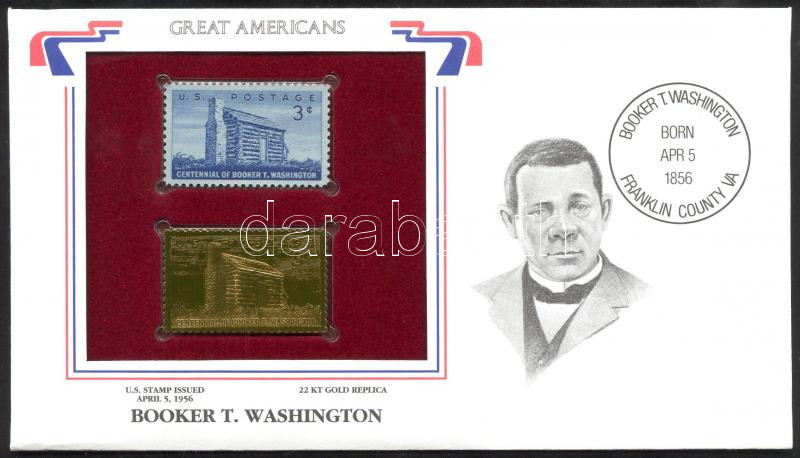 Amerikai Egyesült Államok/"Nagy Amerikaiak" 1956. "Booker T. Washington 3c"- 22K aranyfóliás bélyeg replika és bélyeg borítékban angol nyelvű tájékoztatóval T:1