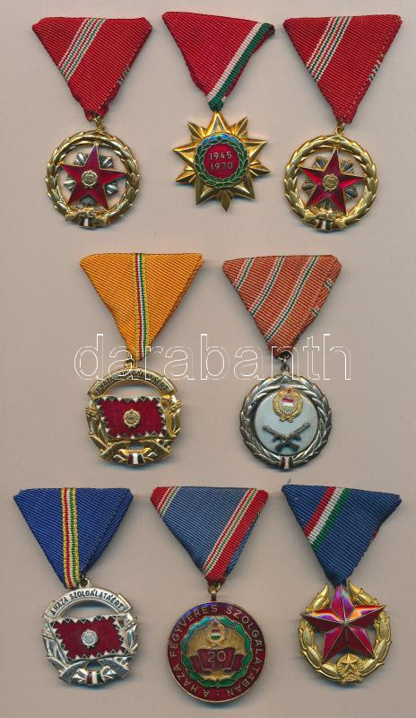 Beschreibung: Kis kitüntetés tétel: 1957. Szocialista Munkáért Érdemérem szalaggal (2x) T:2 összesen 8001 adományozás! + Közbiztonsági Érem arany fokozata szalaggal + 1957. Szolgálati Érdemérem szalaggal + Felszabadulási Emlékérem szalaggal + 1965. Szolgálati Érdemérem 20, 25, 30 év után + Haza Szolgálatáért arany és ezüst fokozata + 2db zománcozott kitűző T:2