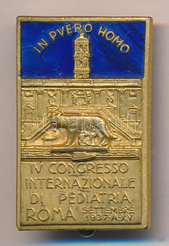 Italy 1937. "International Pediatria Congress Rome" gilded enamelled badge (34x21mm) maker: Johnson Milano C:XF