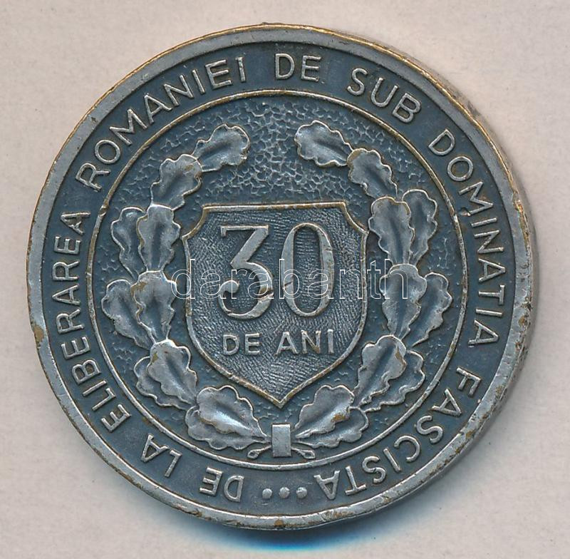 Románia 1977. "30 éve szabadult fel Románia a fasizmus alól" ezüstözött Br emlékérem (35mm) T:2-