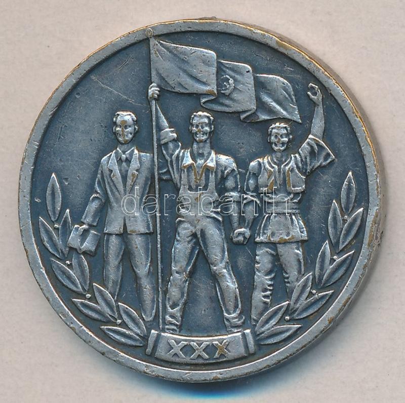 Romania 1977. "30 years since Romania was freed from fascism" silver plated Br medallion (35mm) C:VF