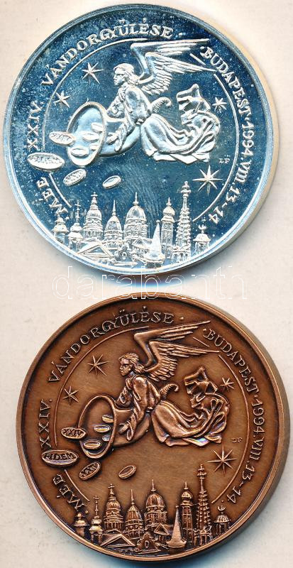 Lebó Ferenc (1960-) / Szabó Géza (1939-) 1994. "MÉE XXIV. Vándorgyűlése Budapest / Kossuth Lajos halálának 100.évfordulója" Ag/36g és Br emlékérem pár (42,5mm) T:PP,1