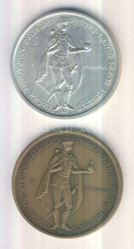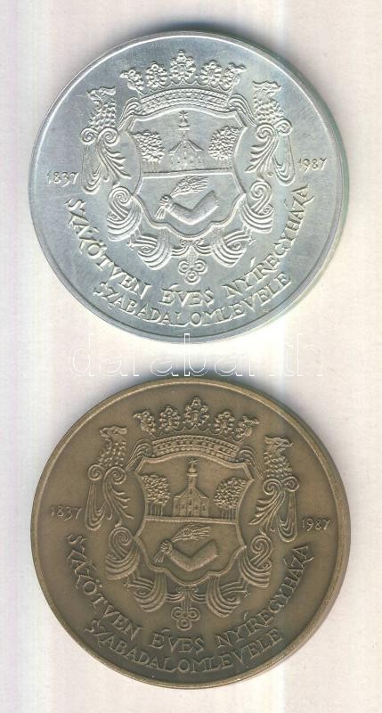 Nagy Lajos (1949-) 1987. "MÉE Szabolcs-Szatmár megyei szervezet / Nyíregyháza szabadalom levele 150 éves" " Ag(0.835) és Br emlékérem (36,22g/42,5mm) pár T:BU,1