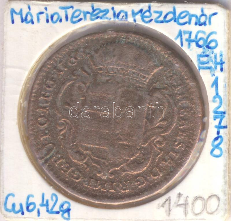 Beschreibung: 1766. Rézdénár "Mária Terézia" T:3