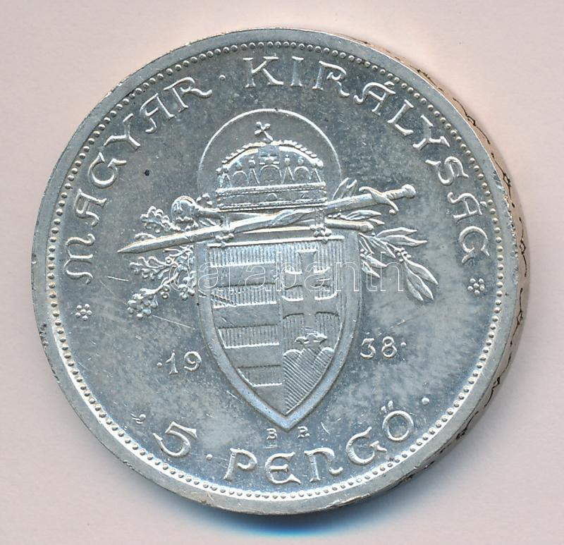 1938. 5P Ag "Szent István" T:2 https://www.darabanth.com/de/169-Fernauktion/169.0/Numismatik/Ungarische-Munzen~4000129/1938-5P-Ag-Szent-Istvan-T2~II566679