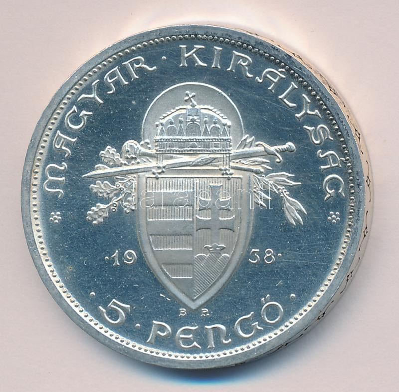 1938. 5P Ag "Szent István" T:2 https://www.darabanth.com/de/169-Fernauktion/169.0/Numismatik/Ungarische-Munzen~4000129/1938-5P-Ag-Szent-Istvan-T2~II568943