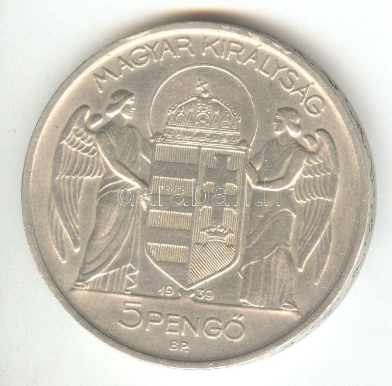 1939. 5P Ag "Horthy - balra" T:2+ https://www.darabanth.com/de/169-Fernauktion/169.0/Numismatik/Ungarische-Munzen~4000129/1939-5P-Ag-Horthy--balra-T2plus~II567547