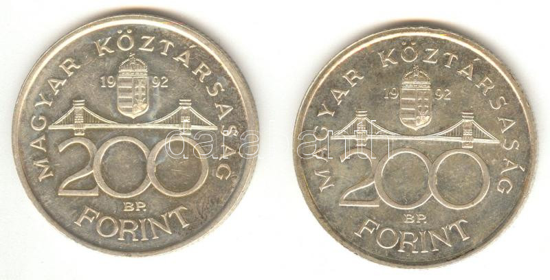 1992. 200Ft Ag "MNB" (2x) T:2 https://www.darabanth.com/de/169-Fernauktion/169.0/Numismatik/Ungarische-Munzen~4000129/1992-200Ft-Ag-MNB-2x-T2~II568115