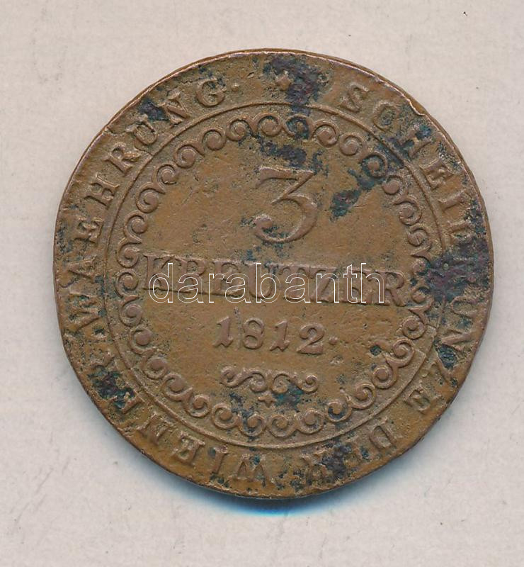 Ausztria/magyar verdejel 1812B 3Kr T:3 https://www.darabanth.com/de/169-Fernauktion/169.0/Numismatik/Ungarische-Munzen~4000129/Ausztriamagyar-verdejel-1812B-3Kr-T3~II519713