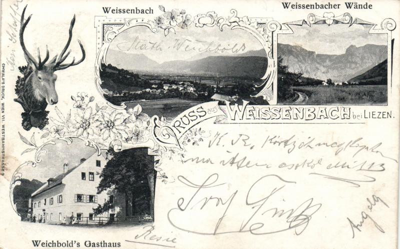 Weissenbach bei Liezen, Weichbold's Gathaus, floral https://www.darabanth.com/de/17-Gross-Auktion/17.1/Ansichtskarten-Ausland/Osterreich~5499/Weissenbach-bei-Liezen-Weichbolds-Gathaus-floral~II782617