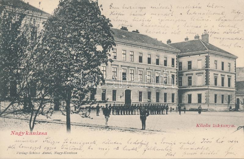 Nagykanizsa, Közös laktanya; kiadja Schless Antal https://www.darabanth.com/de/17-Gross-Auktion/17.1/Ansichtskarten-Ungarn/Ungarn~5482/Nagykanizsa-Kozos-laktanya-kiadja-Schless-Antal~II792475