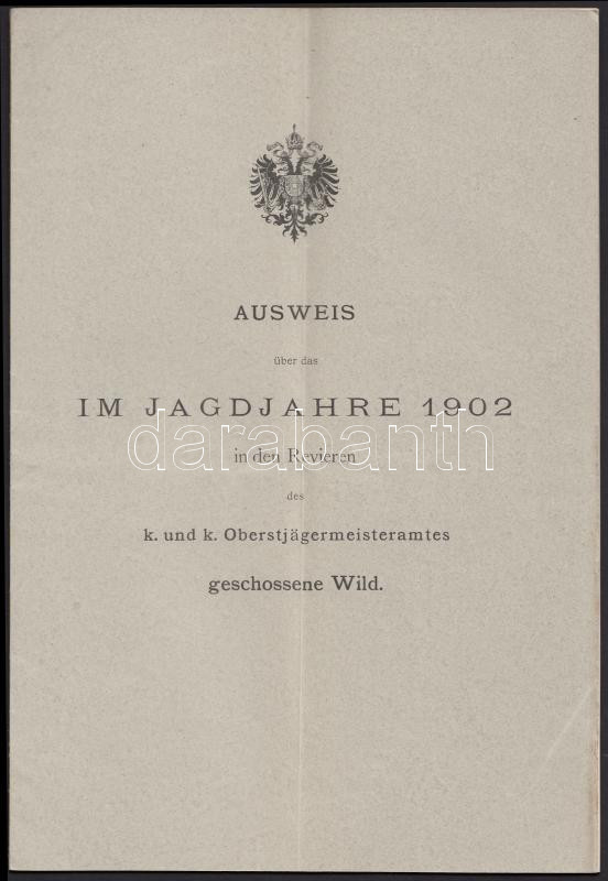 1902 Királyi fővadászmester kimutatása az 1902-es vadászévben az udvar... https://www.darabanth.com/de/17-Gross-Auktion/17.1/Kunst-Dokumente/Drucksachen~5404/1902-Kiralyi-fovadaszmester-kimutatasa-az-1902-es-vadaszevben-az-udvari-vadaszatokon-lelott-~II764350
