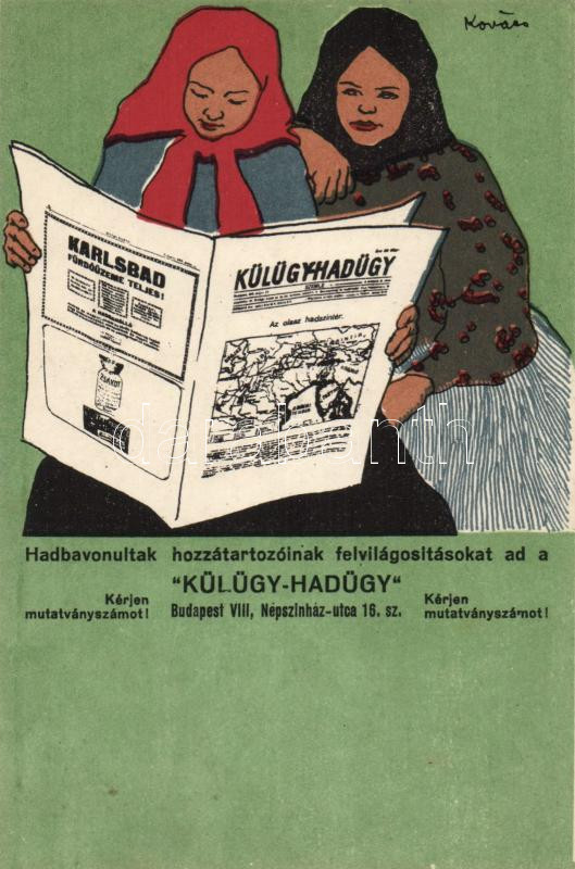 Külügy-Hadügy reklám / Hungarian military newspaper advertisement s: K... https://www.darabanth.com/de/17-Gross-Auktion/17.1/Thematik-und-Kunstlerkarten/Werbungen~5528/Kulugy-Hadugy-reklam-Hungarian-military-newspaper-advertisement-s-Kovacs~II789874