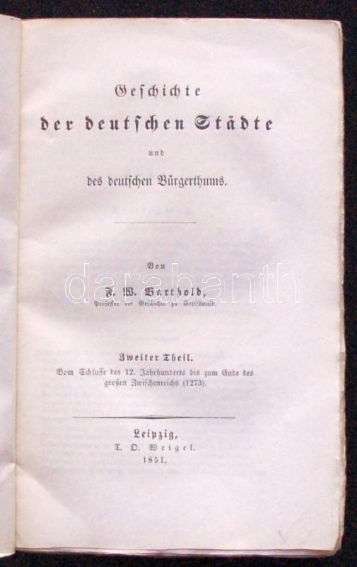 F. W. Barthold: Geschichte der deutschen Städte und des deutschen Bürg... https://www.darabanth.com/de/170-Fernauktion/170.0/Andere-Sammelgebiete/Bucher-Andere-Sprachen~500035/F-W-Barthold-Geschichte-der-deutschen-Stadte-und-des-deutschen-Burgerthums-Lepizig-1851-Weige~II523496