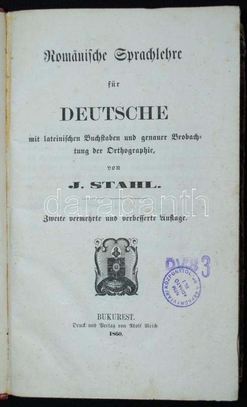J. Stahl: Romänische Sprachlehre für deutsche. Bukurest, 1860. Adolf U... https://www.darabanth.com/de/170-Fernauktion/170.0/Andere-Sammelgebiete/Bucher-Andere-Sprachen~500035/J-Stahl-Romanische-Sprachlehre-fur-deutsche-Bukurest-1860-Adolf-Ulrich~II571963