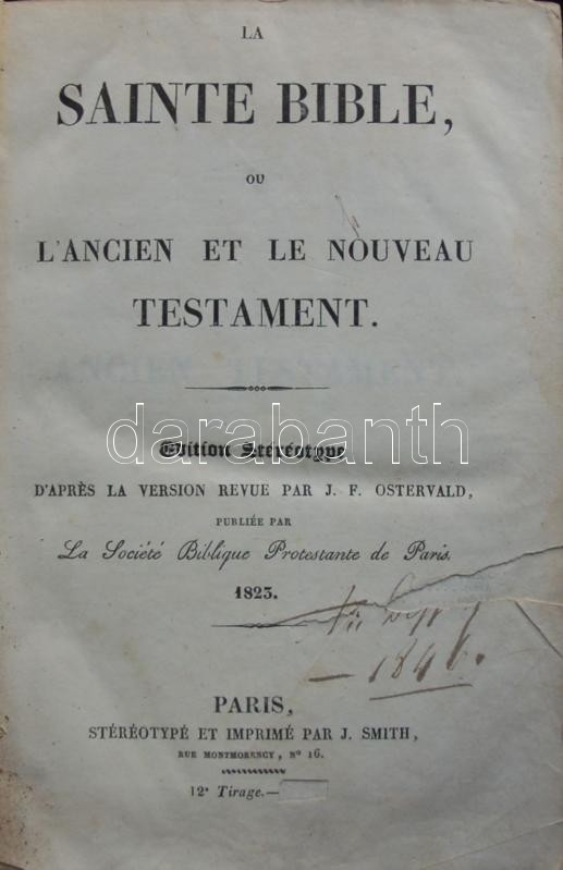 La Sainte Bible ou l'ancien et le noveau testament. Edition stereotype... https://www.darabanth.com/de/170-Fernauktion/170.0/Andere-Sammelgebiete/Bucher-Andere-Sprachen~500035/La-Sainte-Bible-ou-lancien-et-le-noveau-testament-Edition-stereotype-1825-Paris-Smith-roszz-a~II529131