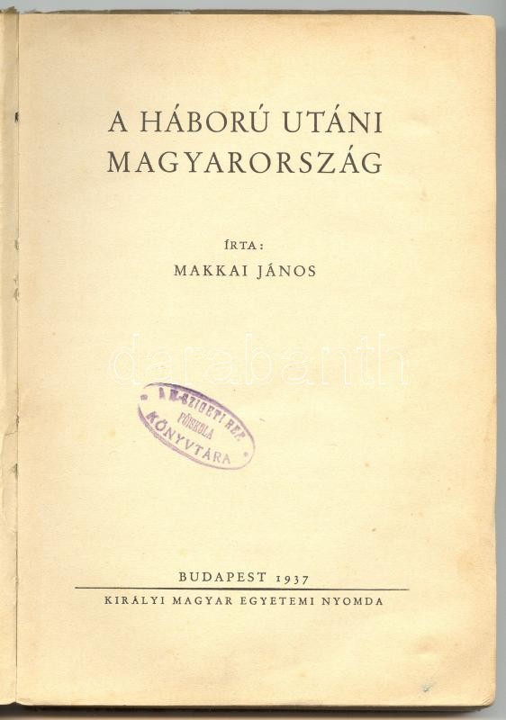 Makkai János: A háború utáni Magyarország. Bp., 1937, Királyi Magyar E... https://www.darabanth.com/de/170-Fernauktion/170.0/Andere-Sammelgebiete/Bucher-Geschichte~500004/Makkai-Janos-A-haboru-utani-Magyarorszag-Bp-1937-Kiralyi-Magyar-Egyetemi-Nyomda-Viseltes~II574242