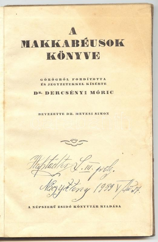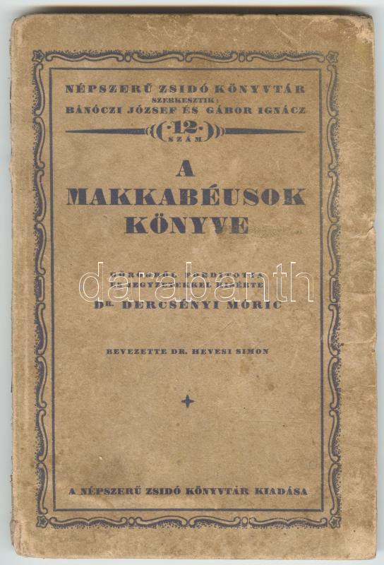 Dr. Dercsényi Móric: Makkabéusok könyve. Globus. A népszerű zsidó köny... https://www.darabanth.com/de/170-Fernauktion/170.0/Andere-Sammelgebiete/Bucher-Judaica~500029/Dr-Dercsenyi-Moric-Makkabeusok-konyve-Globus-A-nepszeru-zsido-konyvtar-kiadasa-papir~II572215