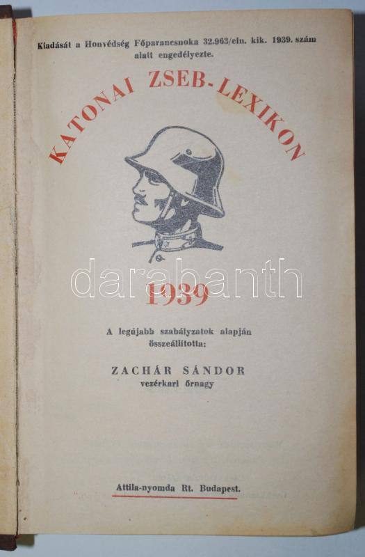 Katonai zseb-lexikon 1939. A legújabb szabályzatok alapján összeáll.: ... https://www.darabanth.com/de/170-Fernauktion/170.0/Andere-Sammelgebiete/Bucher-Militaria~500031/Katonai-zseb-lexikon-1939-A-legujabb-szabalyzatok-alapjan-osszeall-Zachar-Sandor-Bp-Att~II562311