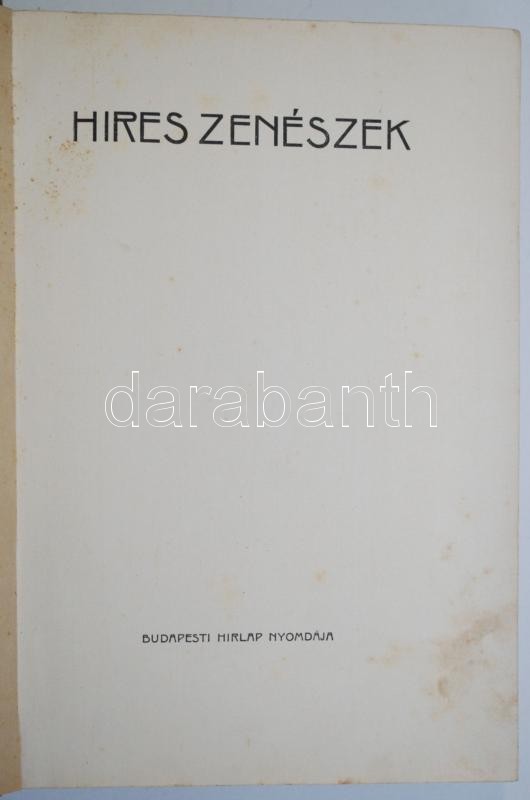 A világ urai: Híres zenészek. Bp., én. Pesti Hírlap nyomda. Aranyozott... https://www.darabanth.com/de/170-Fernauktion/170.0/Andere-Sammelgebiete/Bucher-Musik~500022/A-vilag-urai-Hires-zeneszek-Bp-en-Pesti-Hirlap-nyomda-Aranyozott-egeszvaszon-kotesben~II562595