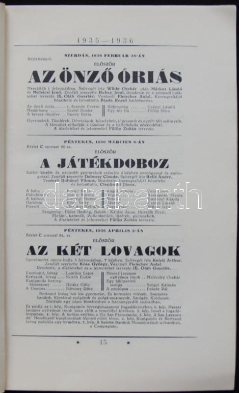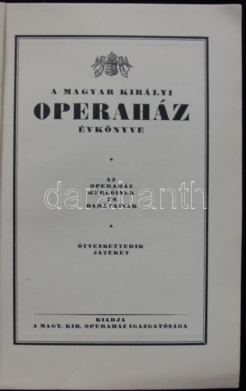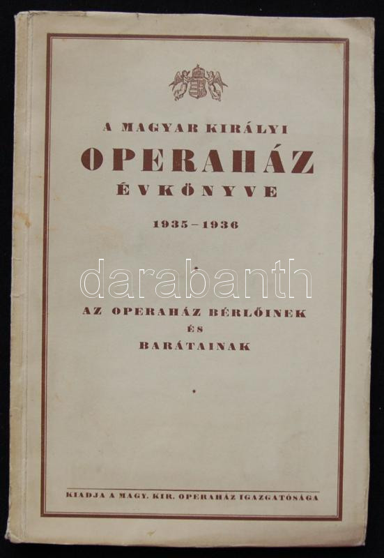 Magyar királyi Operaház évkönyve 1935-1936. Bp., Operaház igazgatósága... https://www.darabanth.com/de/170-Fernauktion/170.0/Andere-Sammelgebiete/Bucher-Musik~500022/Magyar-kiralyi-Operahaz-evkonyve-1935-1936-Bp-Operahaz-igazgatosaga-64p~II546847