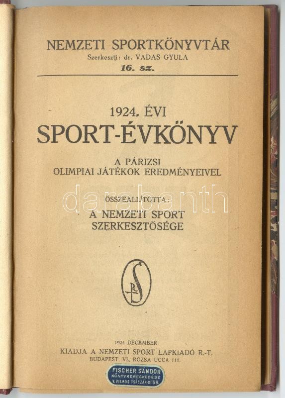 1924 évi sport-évkönyv a párizsi olimpiai játékok eredményeivel. Félvá... https://www.darabanth.com/de/170-Fernauktion/170.0/Andere-Sammelgebiete/Bucher-Sonstige-Raritaten~500038/1924-evi-sport-evkonyv-a-parizsi-olimpiai-jatekok-eredmenyeivel-Felvaszon-kemenykotesbe~II529964
