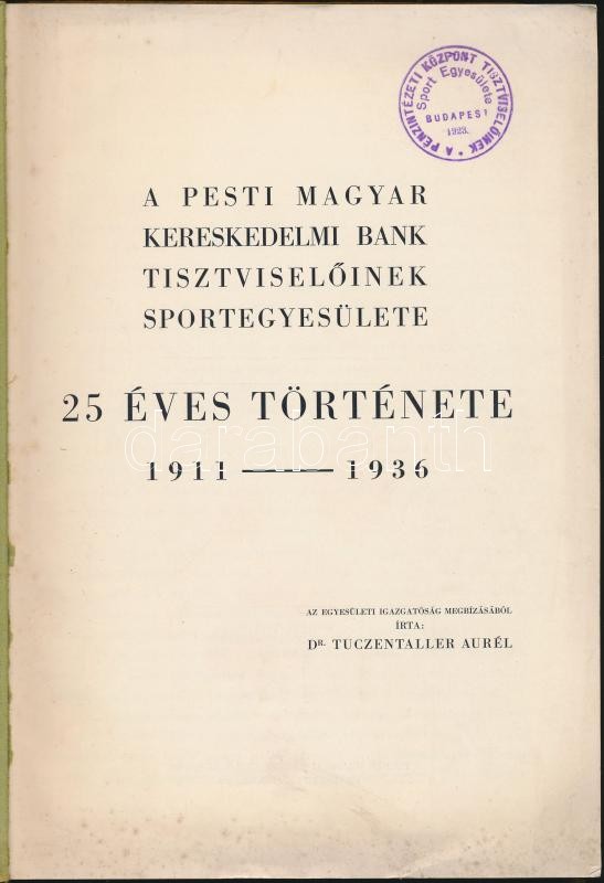 1936 Pesti Magyar Kereskedelmi Bank tisztviselőinek sportegyesülete 25... https://www.darabanth.com/de/170-Fernauktion/170.0/Andere-Sammelgebiete/Bucher-Sonstige-Raritaten~500038/1936-Pesti-Magyar-Kereskedelmi-Bank-tisztviseloinek-sportegyesulete-25-eves-tortenete-borito~II503114