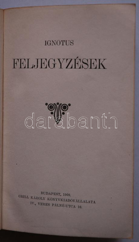 Ignotus (Veigelsberg Hugó): Feljegyzések. Bp., 1909, Grill Károly. Kis... https://www.darabanth.com/de/170-Fernauktion/170.0/Andere-Sammelgebiete/Bucher-Sonstige-Raritaten~500038/Ignotus-Veigelsberg-Hugo-Feljegyzesek-Bp-1909-Grill-Karoly-Kisse-kopott-felbor-kotes~II550620