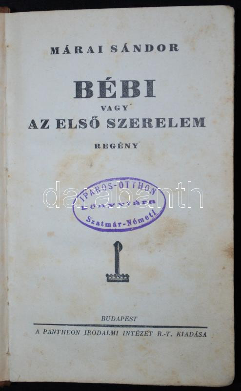 Márai Sándor: Bébi vagy az első szerelem. Bp., 1928. Pantheon 250p. El... https://www.darabanth.com/de/170-Fernauktion/170.0/Andere-Sammelgebiete/Bucher-Sonstige-Raritaten~500038/Marai-Sandor-Bebi-vagy-az-elso-szerelem-Bp-1928-Pantheon-250p-Elso-kiadas-Felvaszon-k~II571965