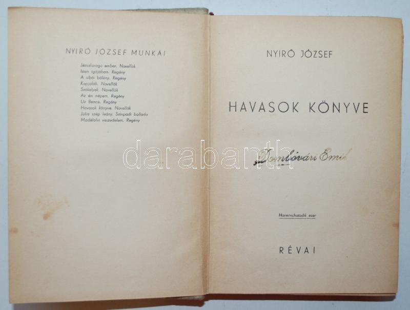Nyirő József: Havasok könyve. Bp., 1936, Révai. Festett halina kötésbe... https://www.darabanth.com/de/170-Fernauktion/170.0/Andere-Sammelgebiete/Bucher-Sonstige-Raritaten~500038/Nyiro-Jozsef-Havasok-konyve-Bp-1936-Revai-Festett-halina-kotesben-szep-allapotban~II573218