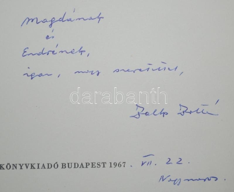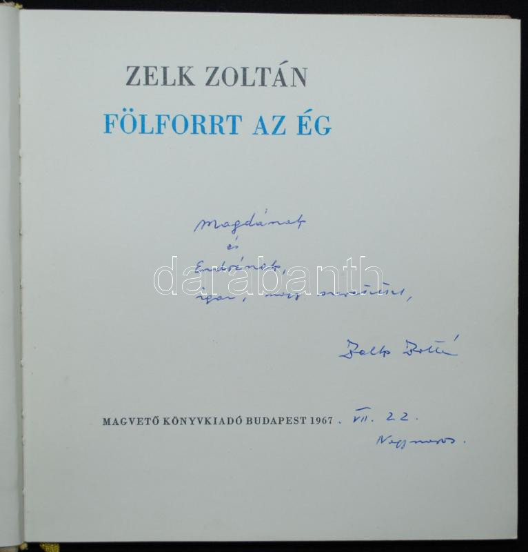 Zelk Zoltán: Fölforrt az ég. Bp., 1967 Magvető. Szász Endrének szóló d... https://www.darabanth.com/de/170-Fernauktion/170.0/Andere-Sammelgebiete/Bucher-Sonstige-Raritaten~500038/Zelk-Zoltan-Folforrt-az-eg-Bp-1967-Magveto-Szasz-Endrenek-szolo-dedikalassal~II571955