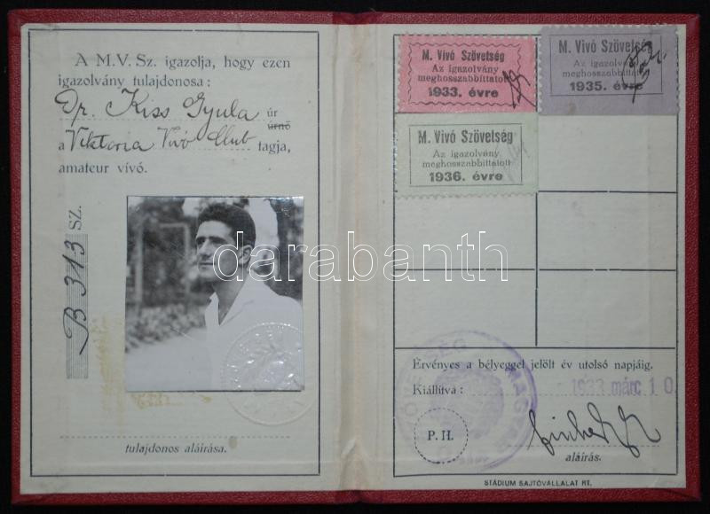 1936 Magyar vívó szövetség fényképes igazolvány https://www.darabanth.com/de/170-Fernauktion/170.0/Andere-Sammelgebiete/Dokument~500020/1936-Magyar-vivo-szovetseg-fenykepes-igazolvany~II572156