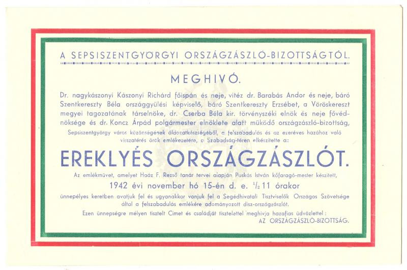 1942 Meghívó a Sepsiszentgyörgyi ereklyés országzászló avatási ünnepsé... https://www.darabanth.com/de/170-Fernauktion/170.0/Andere-Sammelgebiete/Drucksachen~500002/1942-Meghivo-a-Sepsiszentgyorgyi-ereklyes-orszagzaszlo-avatasi-unnepsegere-programmal-vC3~II572447