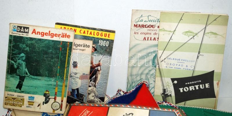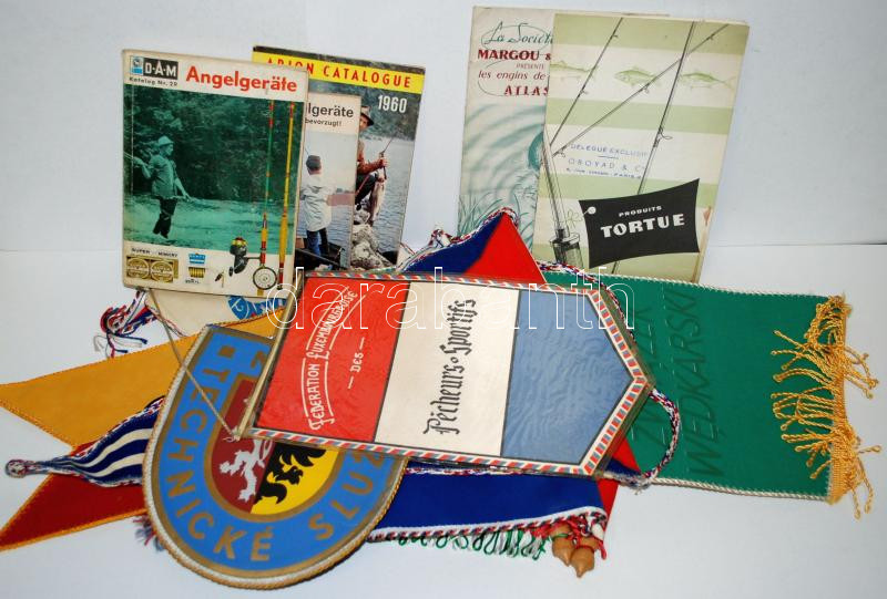 Beschreibung: Horgász klubok zászlói és horgász katalógusok