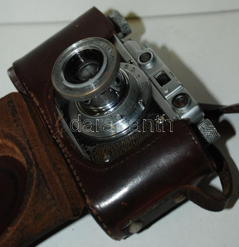 1952 Exportra készült Zorki fényképezőgép Industar-22 f3,5/50 objektívvel eredeti tokjában /