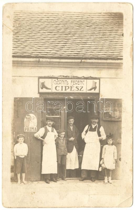 Shoe ... https://www.darabanth.com/de/170-Fernauktion/170.0/Andere-Sammelgebiete/Foto~500024/cca-1930-Csernits-Ferenc-cipeszuzlete-munkatarsakkal-fotolap--3Cbr3EShoe-shop-with-owner-and-w~II572173