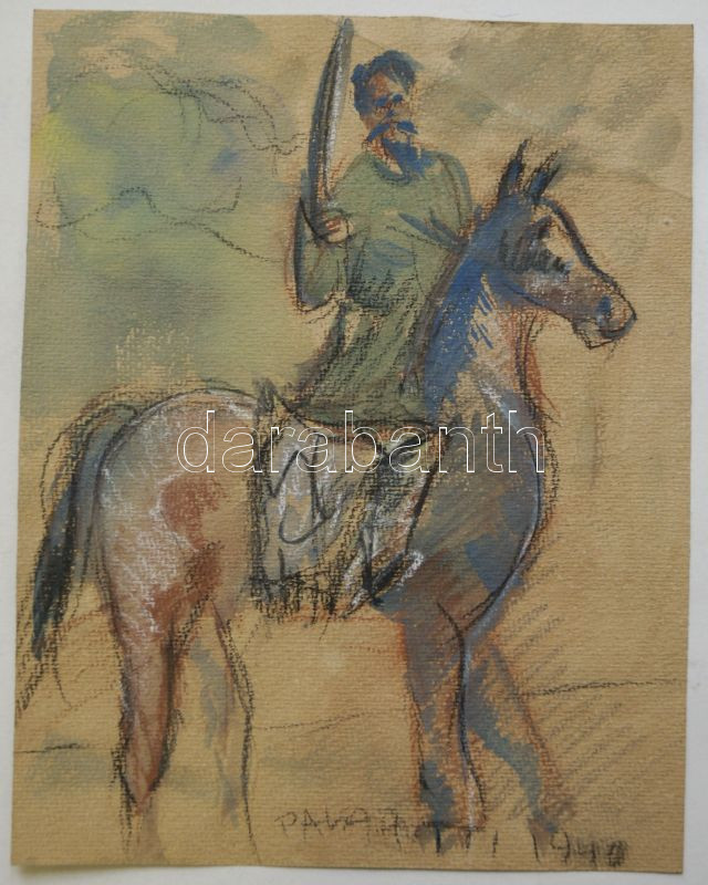 1940 Azonosítatlan jelzéssel: Lovas. Pasztel, papír. 22x28 cm https://www.darabanth.com/de/170-Fernauktion/170.0/Andere-Sammelgebiete/Gemalde-und-Grafiken~500001/1940-Azonositatlan-jelzessel-Lovas-Pasztel-papir-22x28-cm~II472837