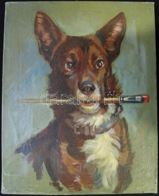 Jelzés nélkül: A festő kutyája, olaj, vászon, 50×40 cm https://www.darabanth.com/de/170-Fernauktion/170.0/Andere-Sammelgebiete/Gemalde-und-Grafiken~500001/Jelzes-nelkul-A-festo-kutyaja-olaj-vaszon-50C39740-cm~II571190