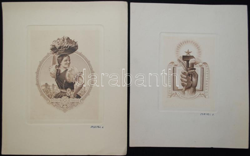 Beschreibung: Vertel József (1922-1993): A szocializmusért, A szüretelő, 2db. rézkarc, papír, jelzettek, (2)× 20×16 cm