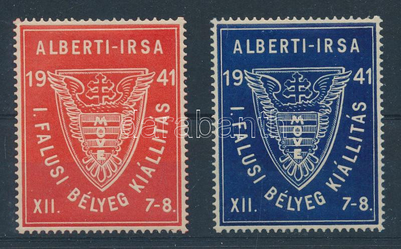 Beschreibung: 1941 Alberti- Irsa I. Falusi Bélyeg Kiállítás 2 db (piros és fekete) levélzáró
