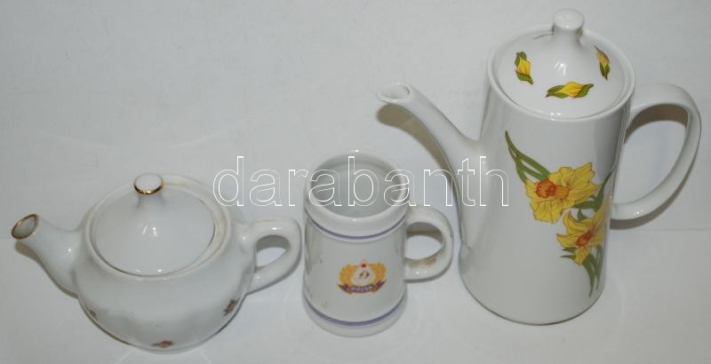 Beschreibung: Porcelán tétel: Alfödi kiöntő, Hollóházi kis korsó, Zsolnay kiöntő, jelzettek, hibátlanok