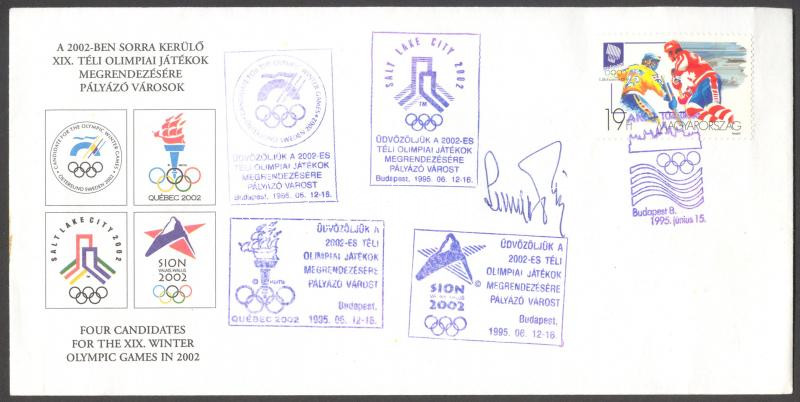 Beschreibung: Schmitt Pál aláírása MOB elnökként, emlék bélyegzős borítékon