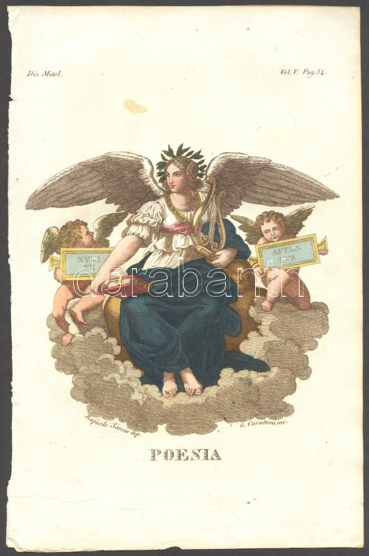 Poesia, színezett acélmetszet az 1823-ban Milánóban kiadott Dizionario... https://www.darabanth.com/de/170-Fernauktion/170.0/Andere-Sammelgebiete/Stich~500003/Poesia-szinezett-acelmetszet-az-1823-ban-Milanoban-kiadott-Dizionario-dogni-mitologica-e-antic~II574580
