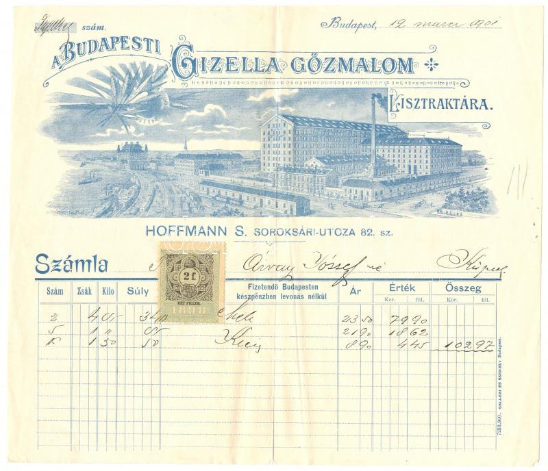 1901 Budapest Gizella malom dekoratív fejléces számla https://www.darabanth.com/de/170-Fernauktion/170.0/Andere-Sammelgebiete/Werbungen~500025/1901-Budapest-Gizella-malom-dekorativ-fejleces-szamla~II572450