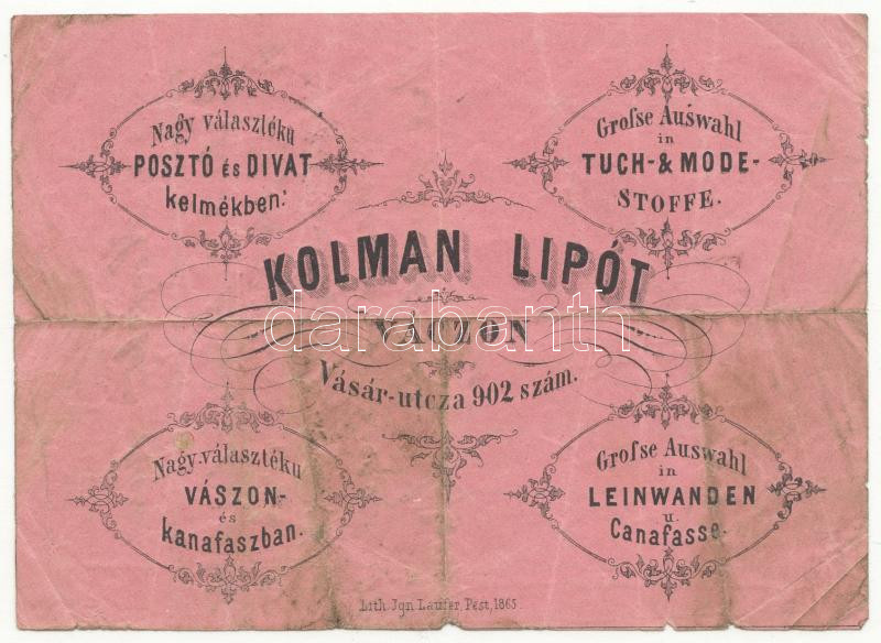 cca 1840 Kolman Lipót Vác rövidáru-kereskedő reklámos számla (gyűrött)... https://www.darabanth.com/de/170-Fernauktion/170.0/Andere-Sammelgebiete/Werbungen~500025/cca-1840-Kolman-Lipot-Vac-rovidaru-kereskedo-reklamos-szamla-gyurott-Clothes-ware-trade~II534932
