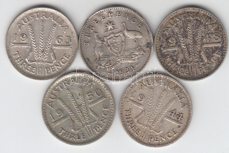 Australia 1934-63. ... https://www.darabanth.com/de/170-Fernauktion/170.0/Numismatik/Auslandische-Munzen~500131/Ausztralia-1934-63-3p-Ag-5x-klf-evszammal-T2-3-3Cbr3EAustralia-1934-63-3-pence-Ag-5x-differ~II574140