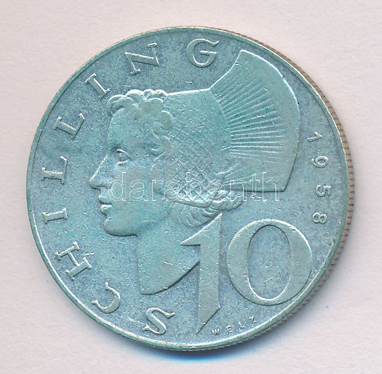 Austria 1958. 10 Schilling Ag C:F https://www.darabanth.com/de/170-Fernauktion/170.0/Numismatik/Auslandische-Munzen~500131/Ausztria-1958-10Sch-Ag-T3-3Cbr3EAustria-1958-10-Schilling-Ag-CF~II571678