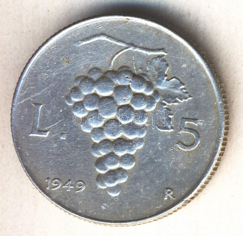 Italy 1949R 5 Lira Al C:XF https://www.darabanth.com/de/170-Fernauktion/170.0/Numismatik/Auslandische-Munzen~500131/Olaszorszag-1949R-5L-Al-T2-3Cbr3EItaly-1949R-5-Lira-Al-CXF~II575183