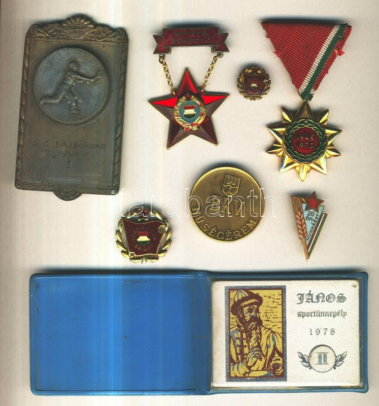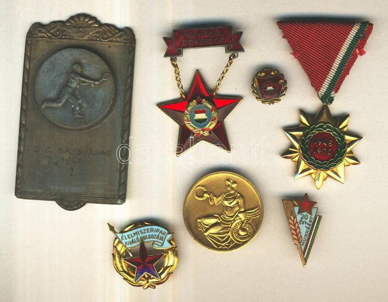 11db különféle kitüntetés és díjérem, többen eredeti tokban, jobb darabok is: "Élelmiszeripar Kiváló Dolgozója" zománcozott kitüntetés miniatűrrel, BKV hűségérem, Felszabadulási Emlékérem T:1,2